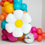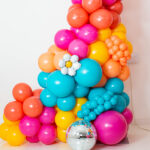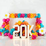 Balloon flower arch 6m wide, with light up numbers surrounded by balloons, other colors are available in this design