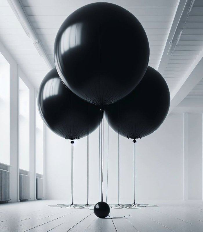 3x 3ft latex balloons filled with helium, add tassels for extra design flair