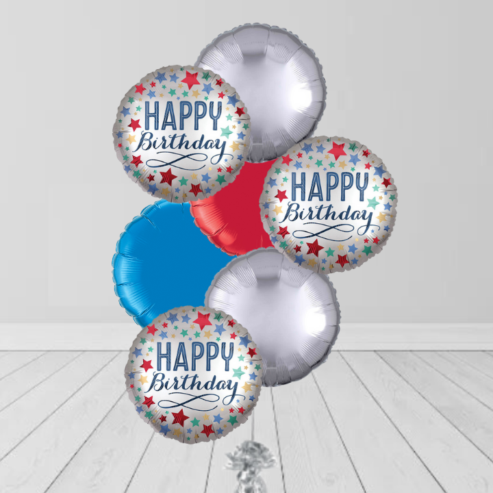 3x Happy Birthday Stars foil 18″ balloons with 4 circle foil balloons In complimentary colours