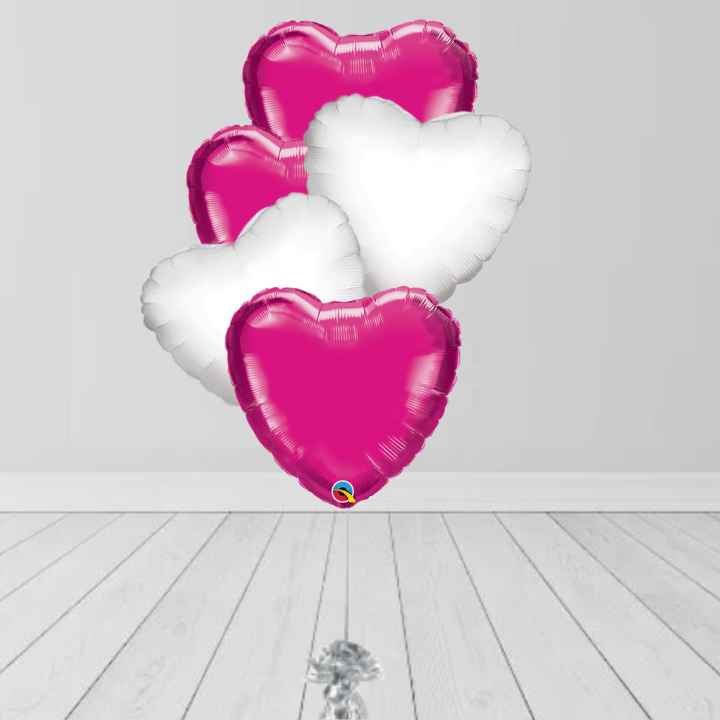 Heart Shaped Foil Balloon Bunch Hot Pink & White