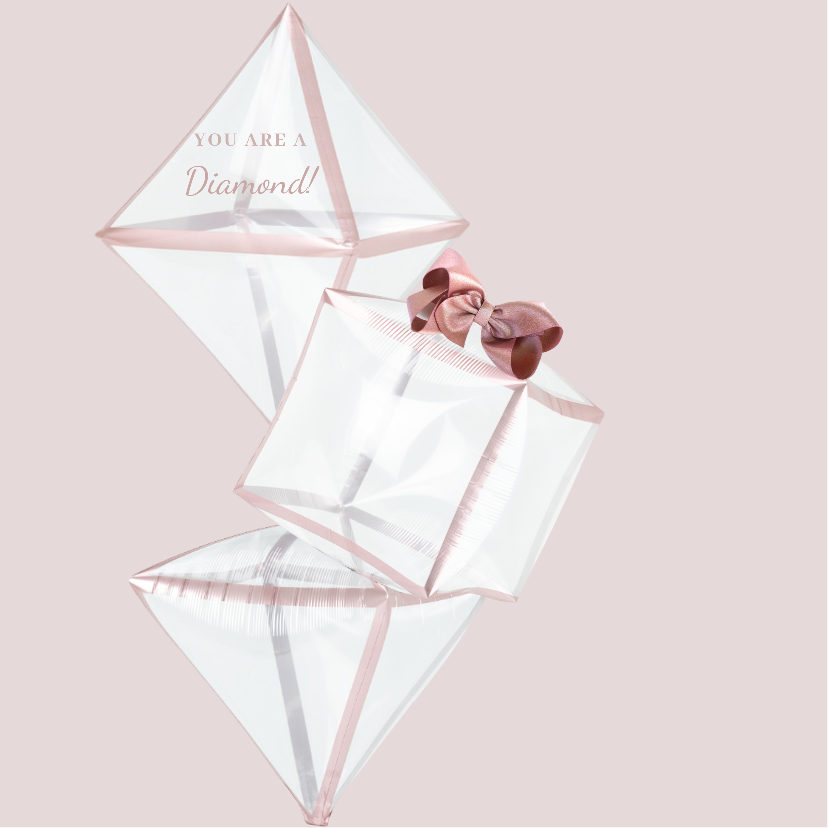 The Trio Shaped Foil Helium Balloon Bunch White and Rose Gold